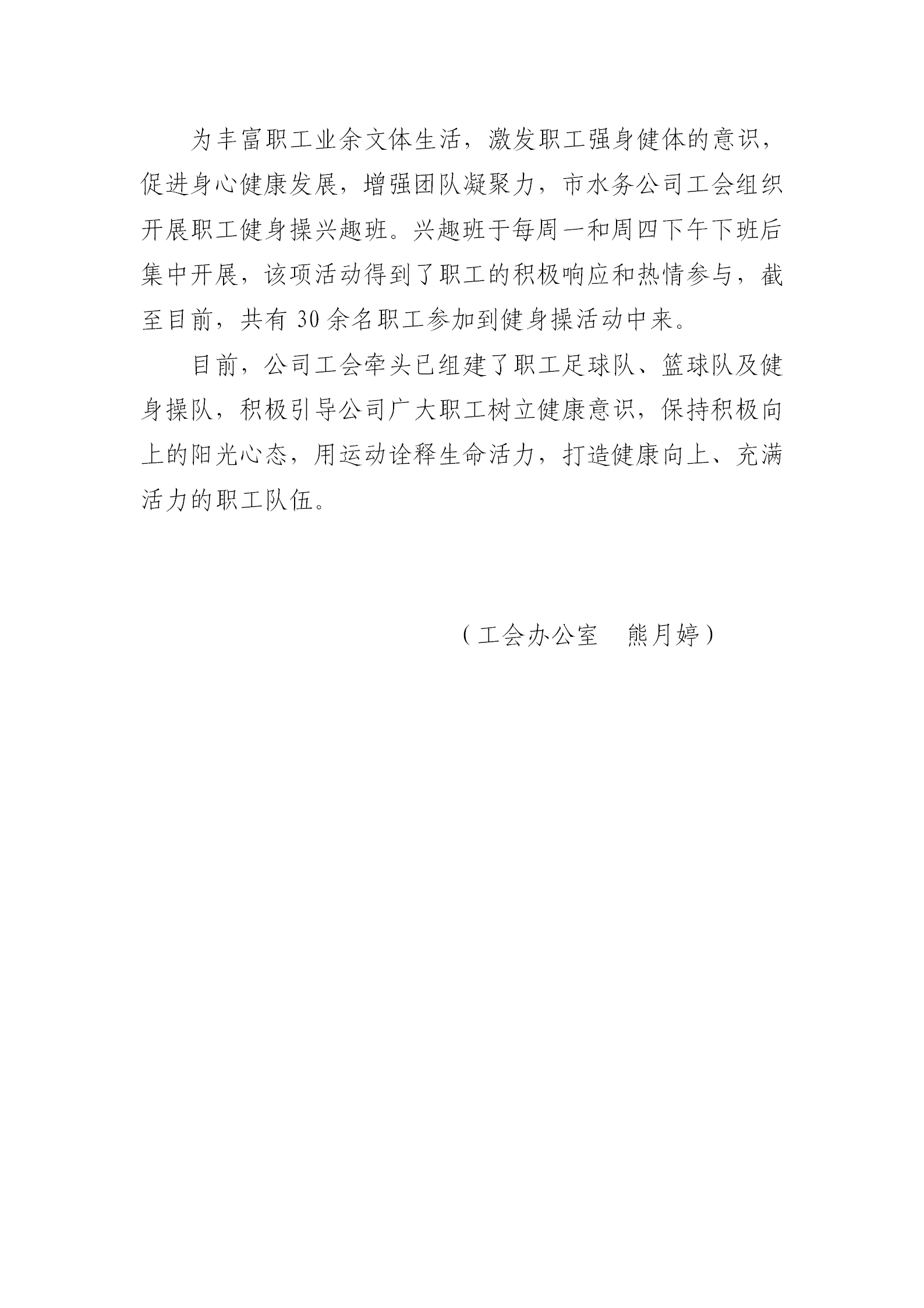 水務公司工會組織開展職工健身操興趣班