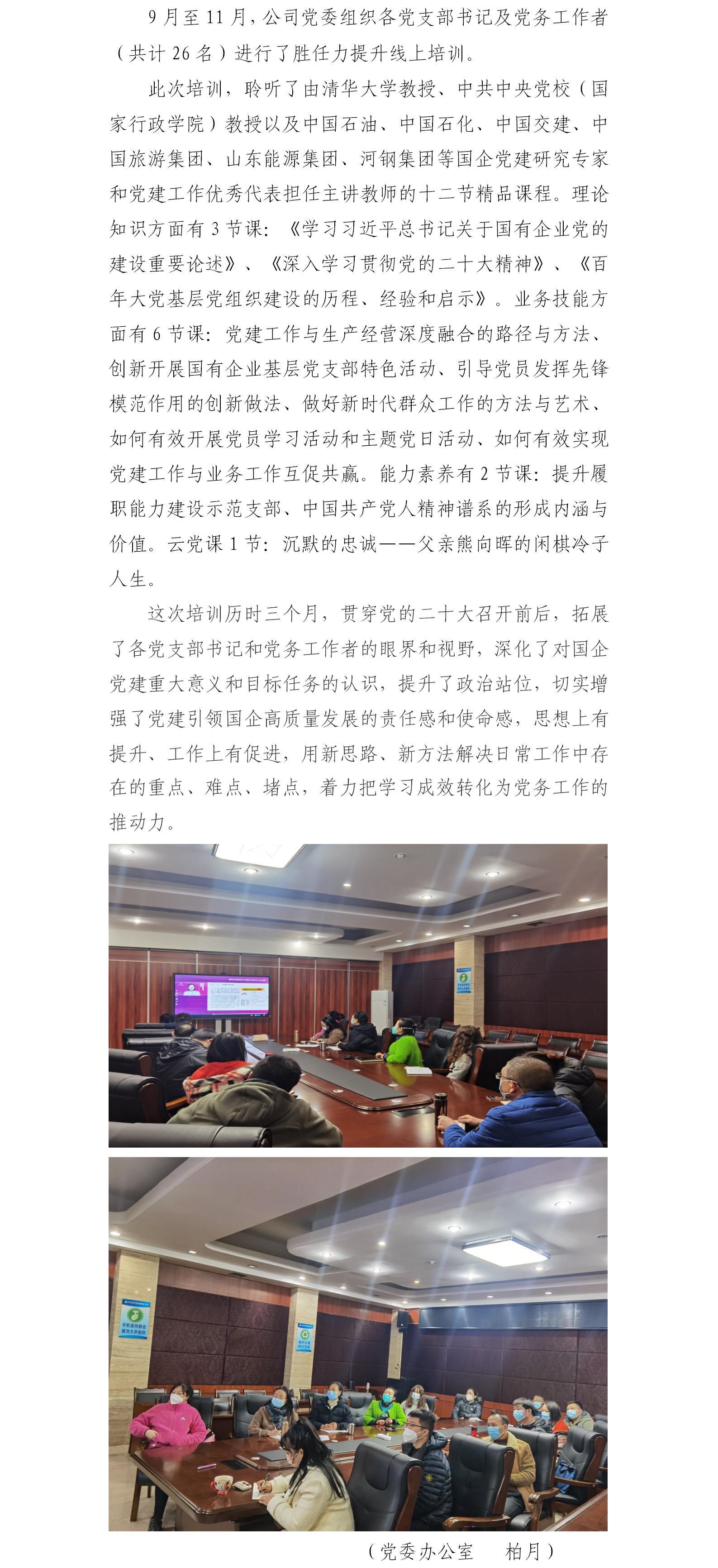 公司黨委舉辦黨支部書記(黨務工作者) 全覆蓋線上培訓