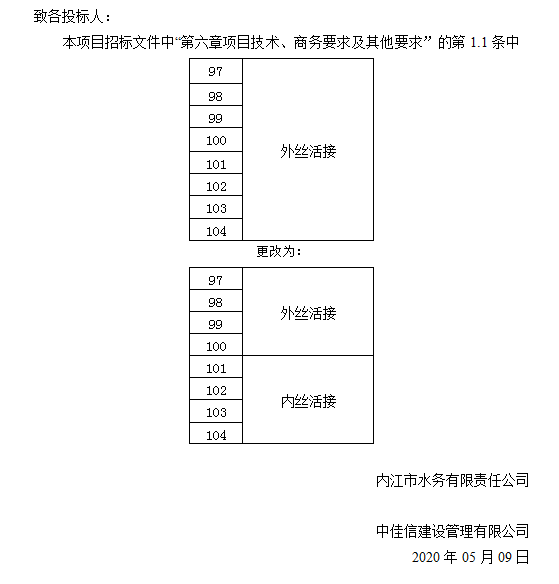 內江市水務有限責任公司PPR給水管及管件采購項目更正公告
