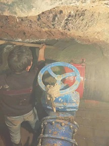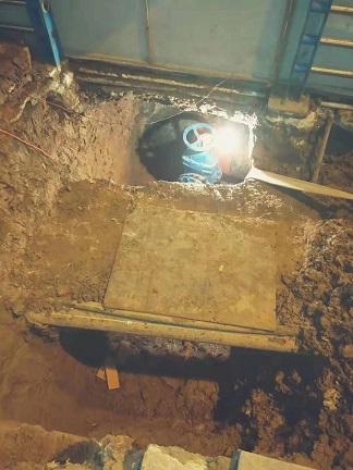 由于該工程牽扯面積廣且用戶數量多,時間緊任務重,嚴冬的夜晚寒風刺骨,為了快速完成接水,施工人員在寒夜里忙得熱火朝天,臉上看不到一絲倦意。在大家的共同努力下,順利完成了管道碰接任務。