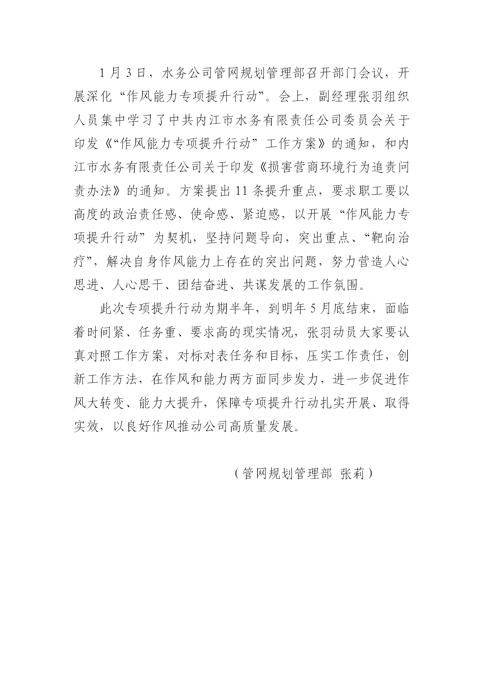 管網規劃管理部開展《作風能力專項提升行動》宣貫會