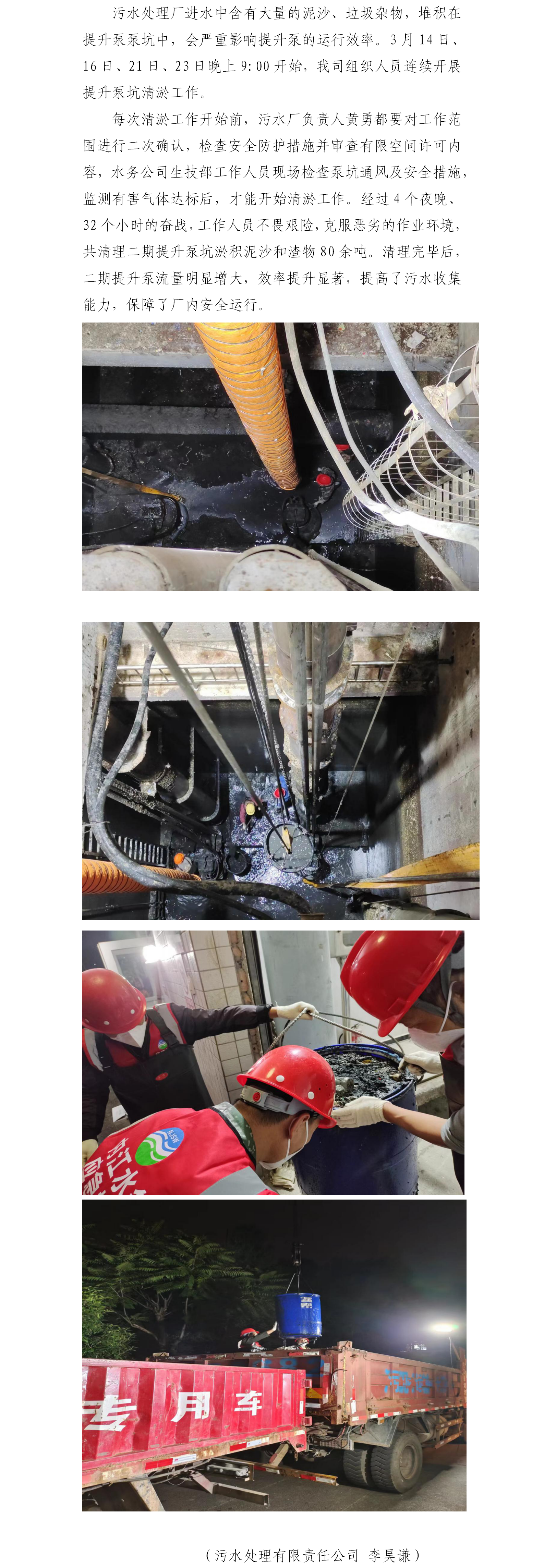 內(nèi)江市污水處理有限責(zé)任公司泵坑清淤,提升設(shè)備運(yùn)行效率