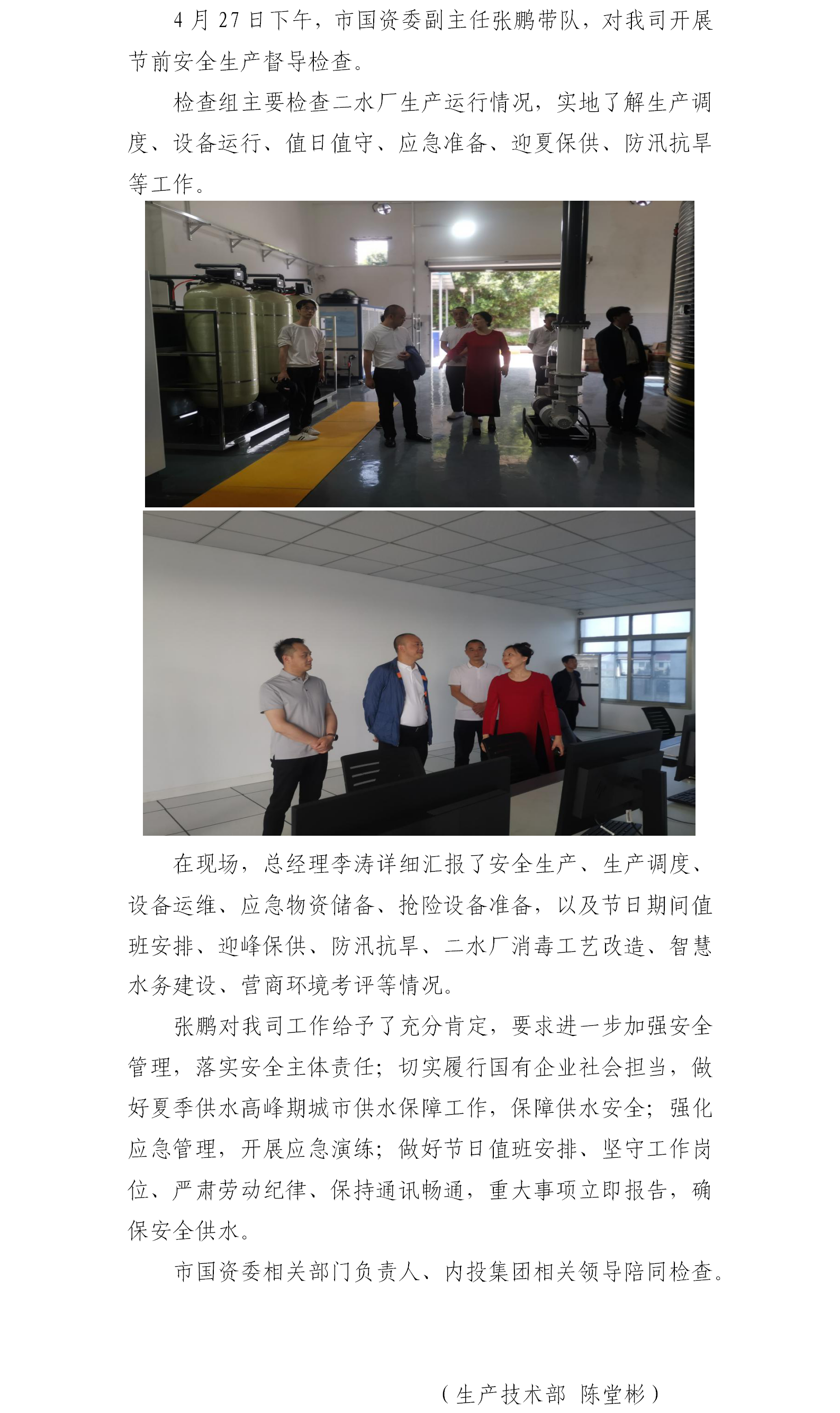 迎峰保供 安全先行——市國資委領導開展節前安全生產督導檢查