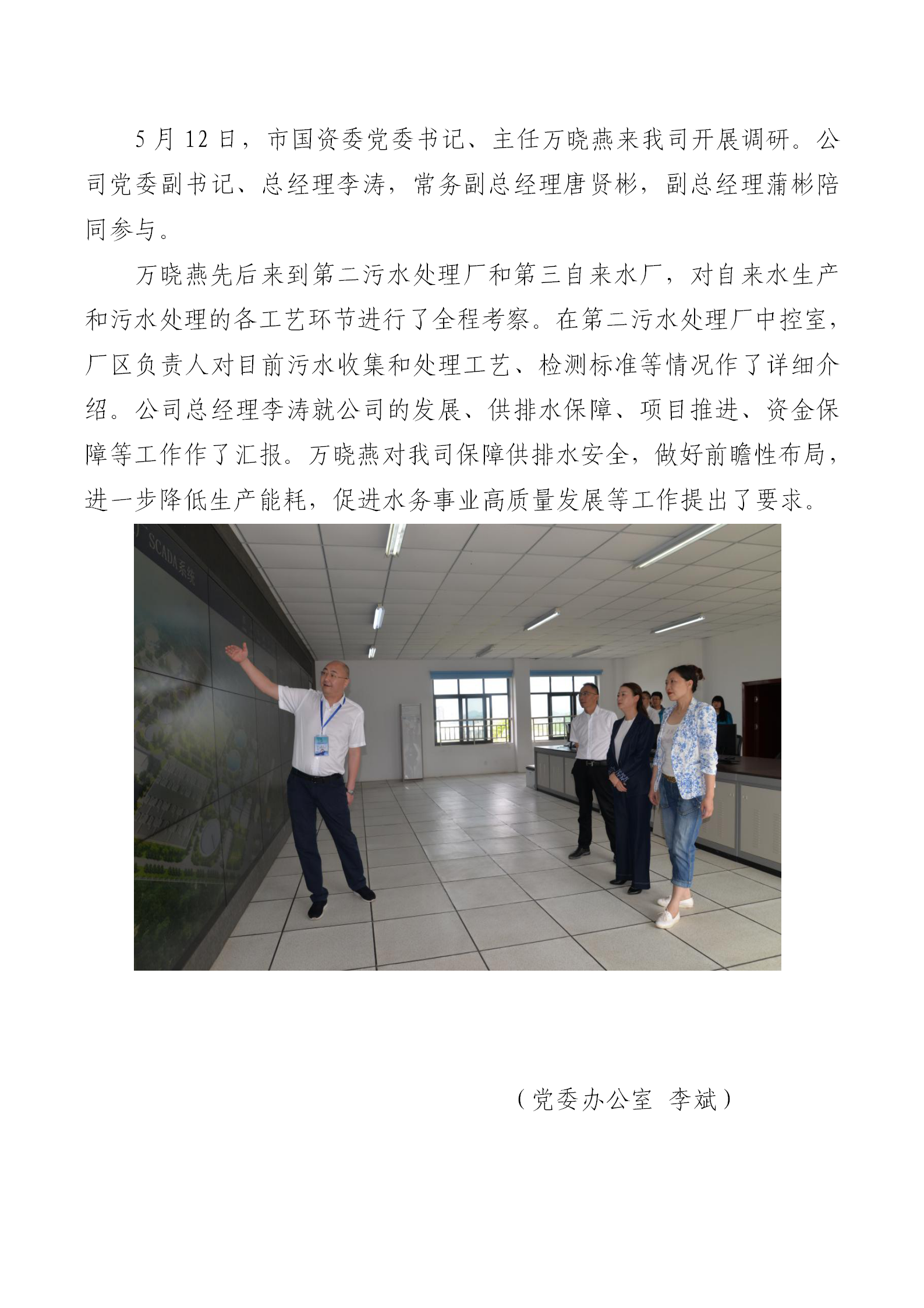 市國資委主任萬曉燕調研水務公司
