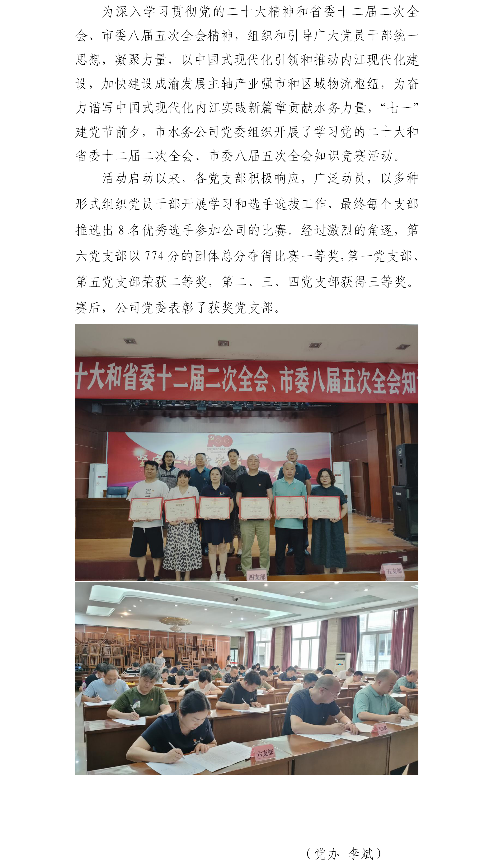 市水務公司開展黨的二十大和省委十二屆二次全會、市委八屆五次全會知識競賽