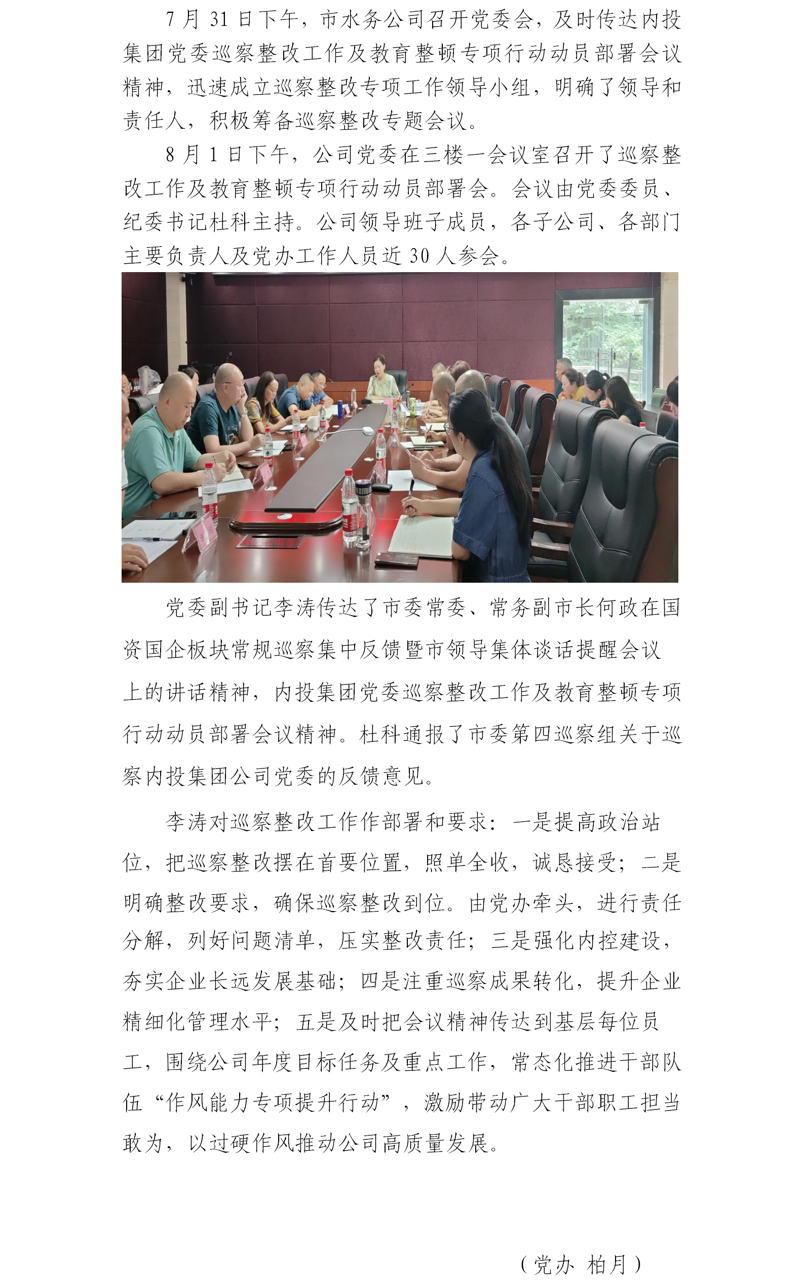 內(nèi)江市水務(wù)有限責(zé)任公司黨委召開巡察整改工作暨教育整頓專項行動動員部署會