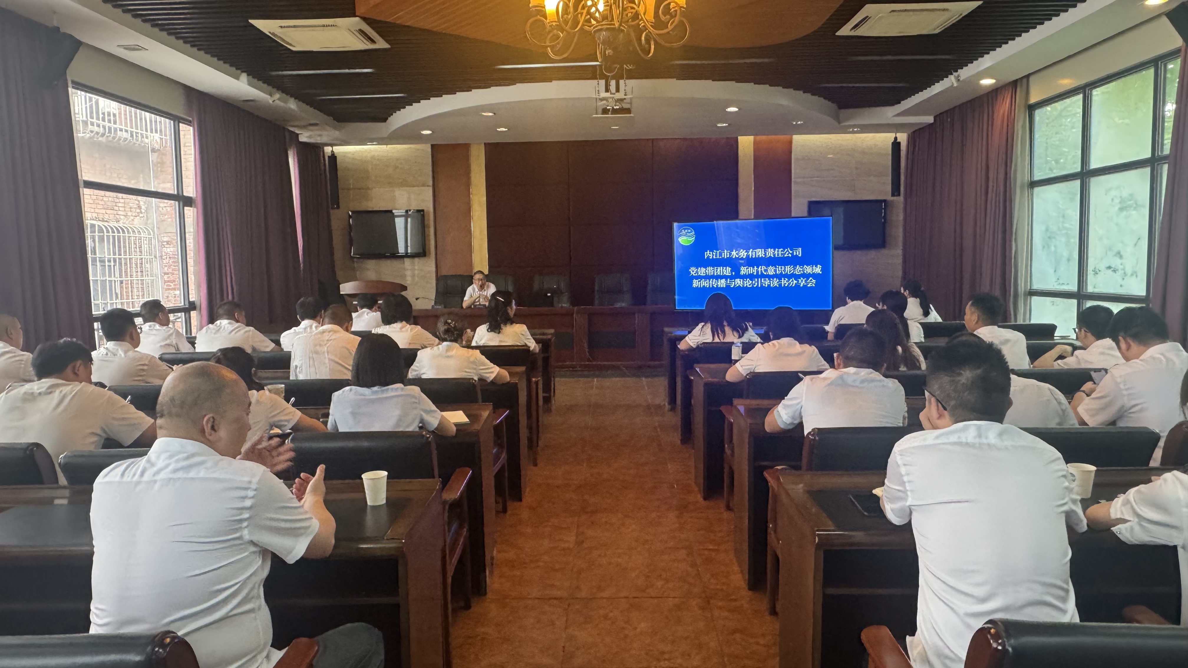 在新時代開放網絡環境深刻變化的背景下,為提升思想認識,筑牢輿論陣地,保障水務高質量發展。7月11日,市水務公司首次舉辦了以“黨建帶團建,新時代意識形態領域新聞傳播與輿論引導”為主題的讀書分享會。參會人員包括公司中層管理人員及團員,共計40余人。公司團委書記左海霞、辦公室吳凌霄分別進行了分享。