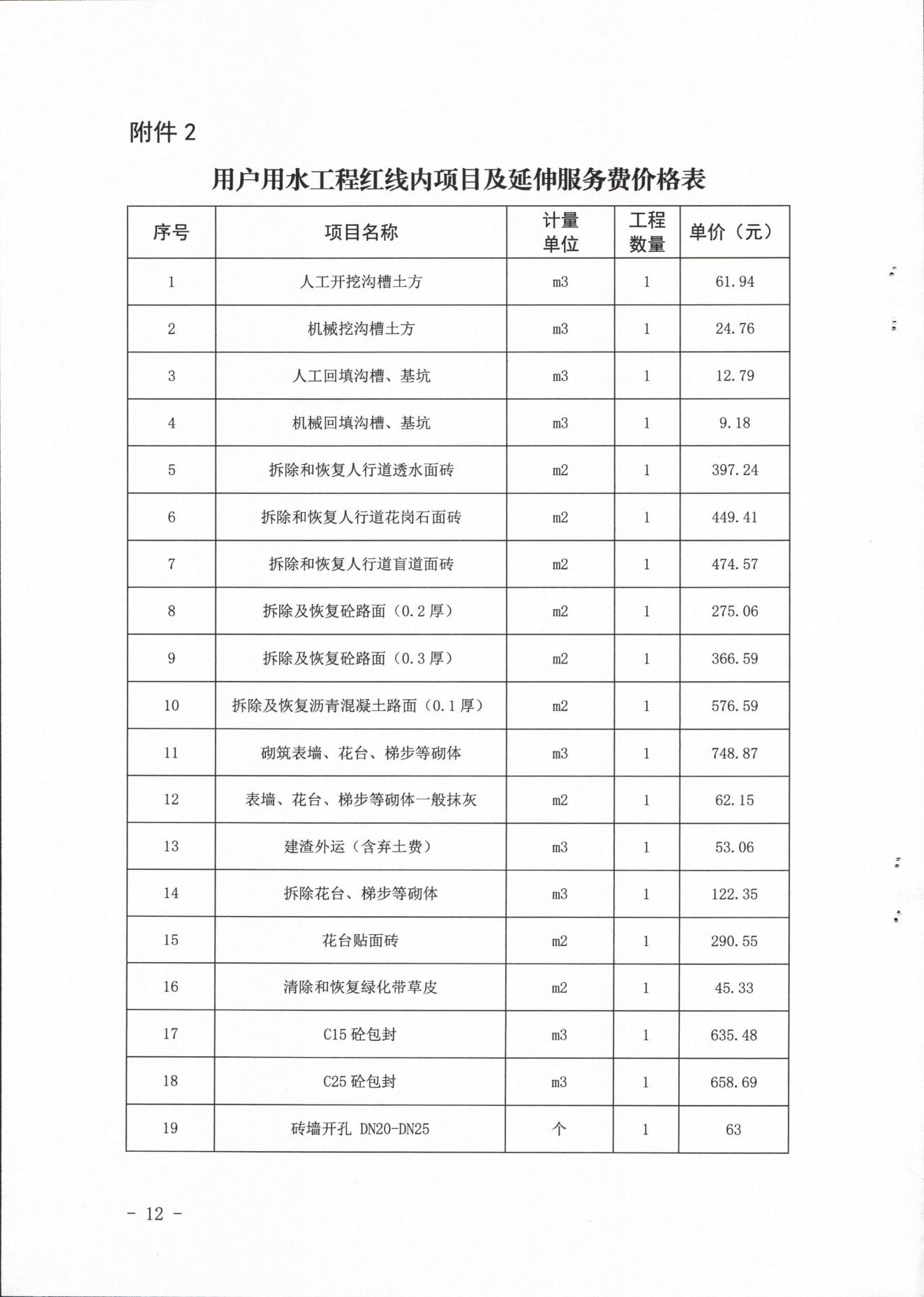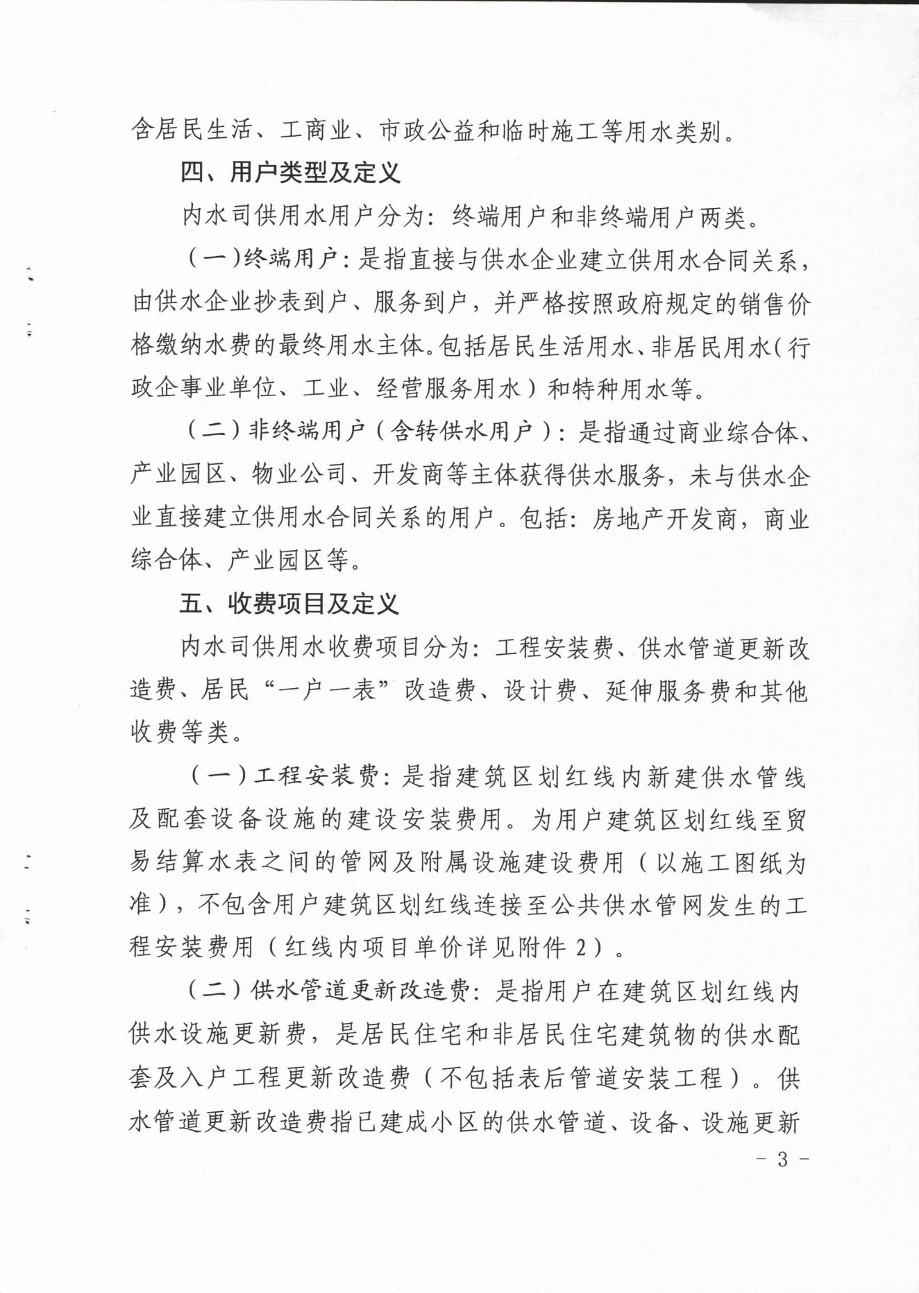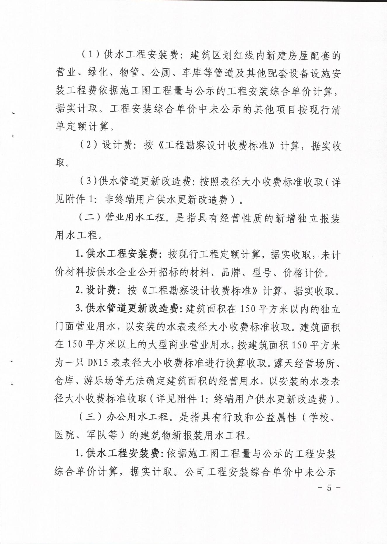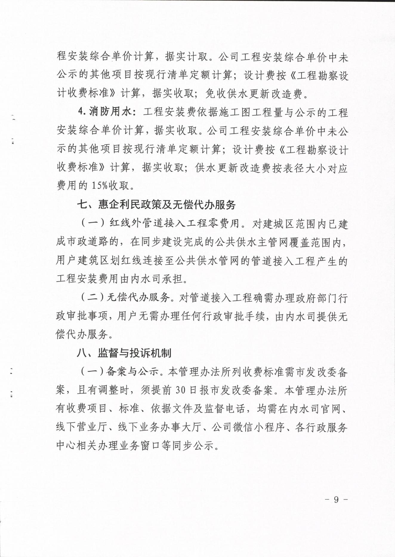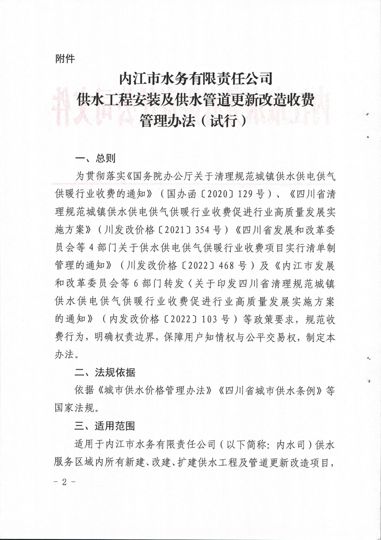 內江市水務有限責任公司供水工程安裝及供水管道更新改造收費管理辦法(試行)